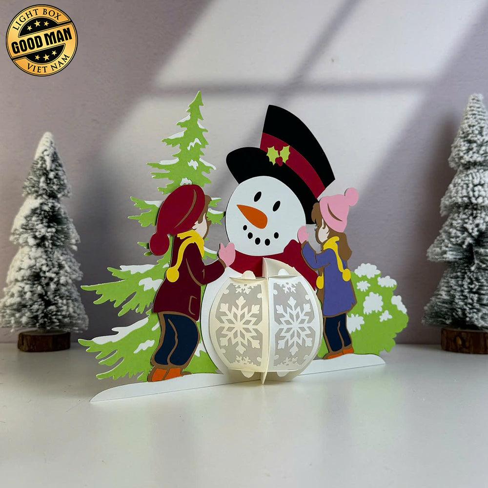 Snowman And Kid Christmas - 3D Christmas Lantern File - Cricut File 1 - LightBoxGoodMan