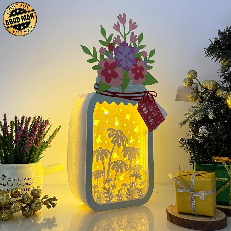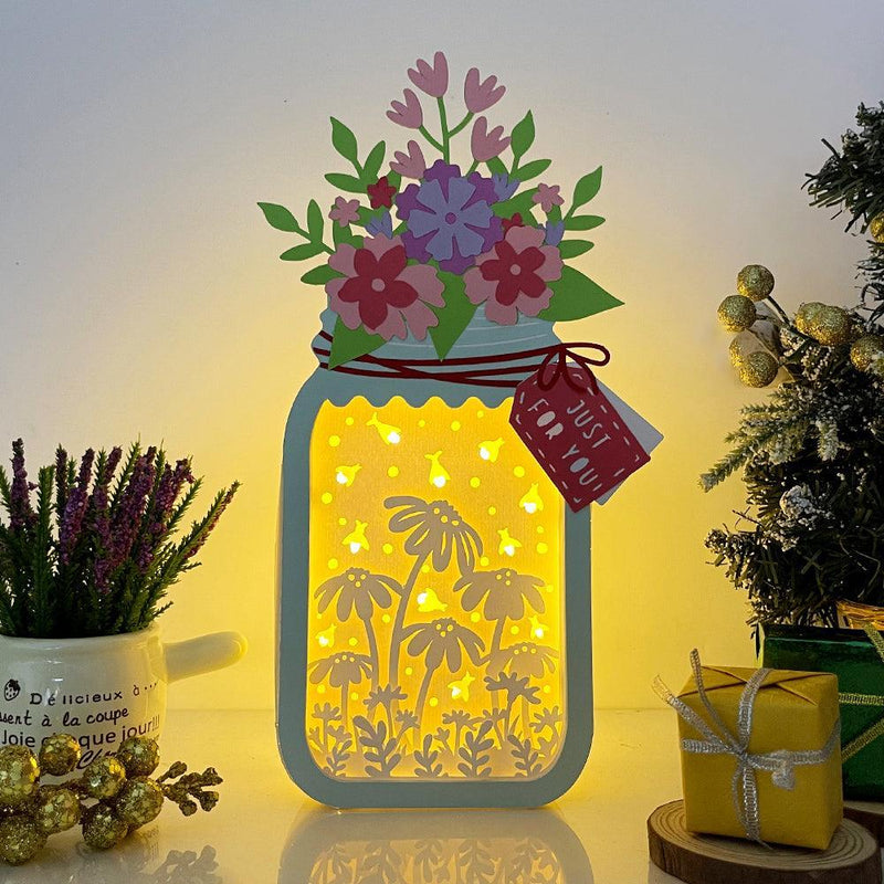 Firefly Garden - Paper Cut Floral Mason Jar Light Box File - Cricut File - 11,1x5,5 Inches - LightBoxGoodMan