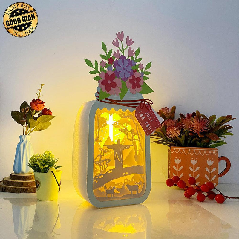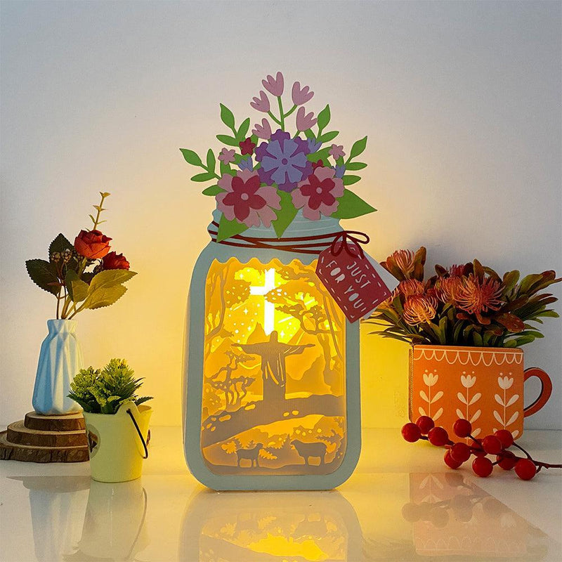 Jesus - Paper Cut Floral Mason Jar Light Box File - Cricut File - 11,1x5,5 Inches - LightBoxGoodMan
