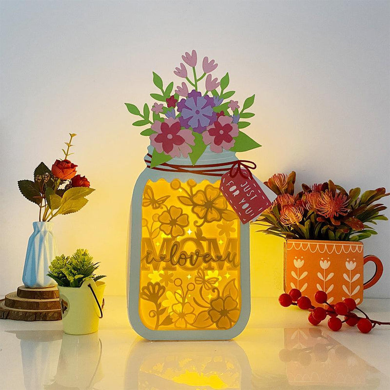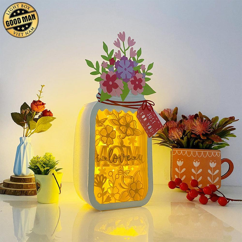 Love You Mom - Paper Cut Floral Mason Jar Light Box File - Cricut File - 11,1x5,5 Inches - LightBoxGoodMan