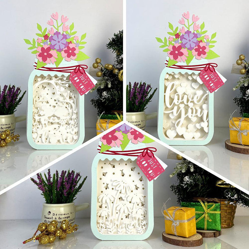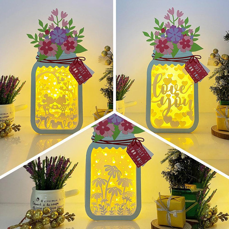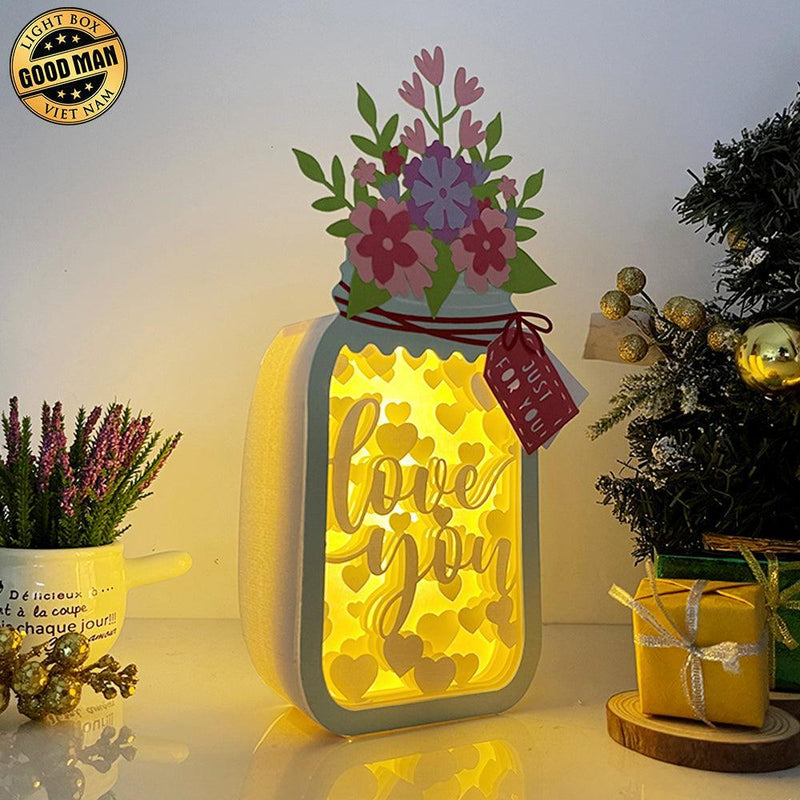 Love You - Paper Cut Floral Mason Jar Light Box File - Cricut File - 11,1x5,5 Inches - LightBoxGoodMan