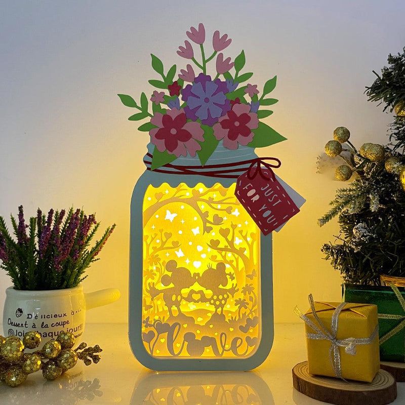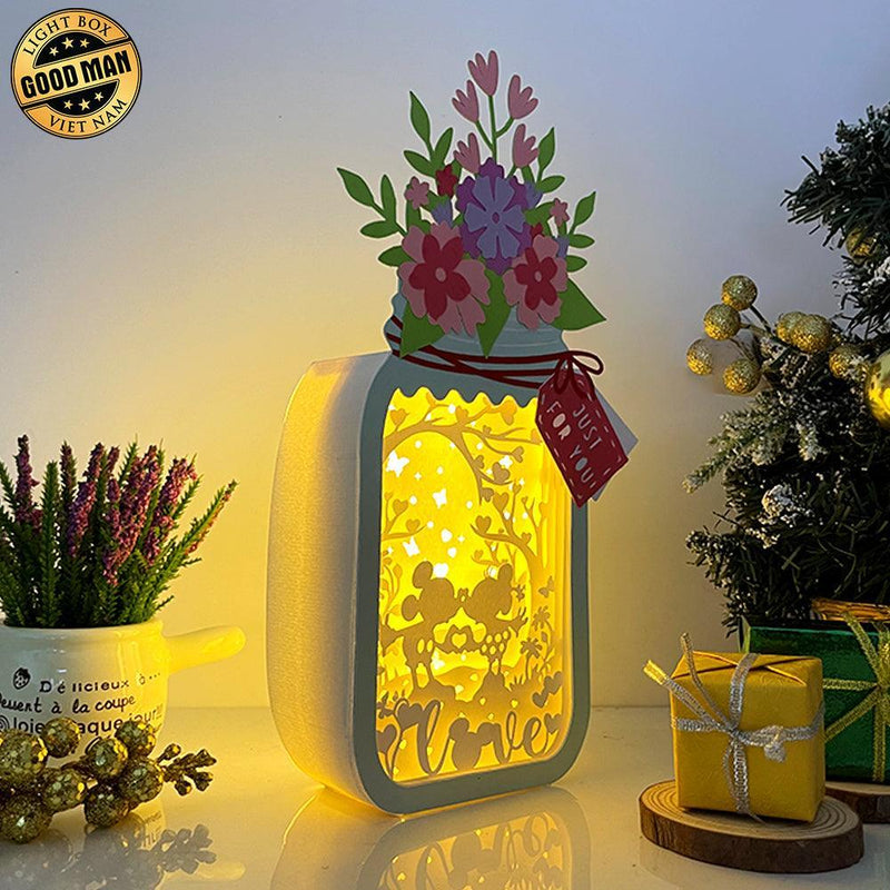 Mickey Love - Paper Cut Floral Mason Jar Light Box File - Cricut File - 11,1x5,5 Inches - LightBoxGoodMan