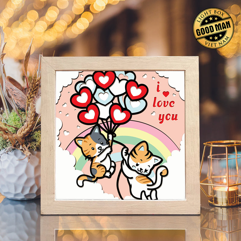 Valentine Cat – Paper Cut Light Box File - Cricut File - 8x8 Inches - LightBoxGoodMan