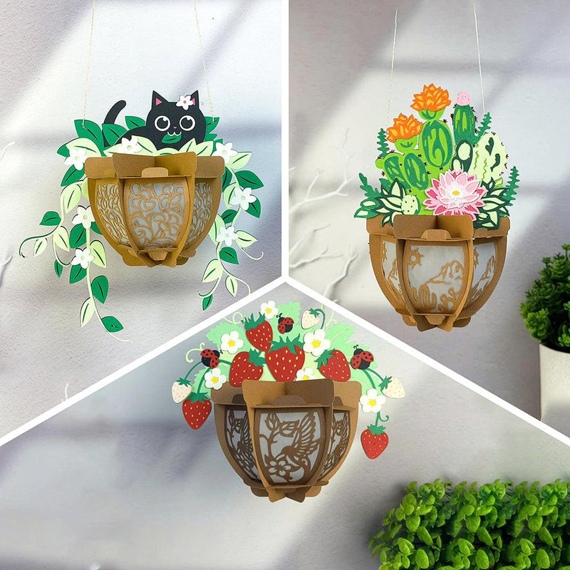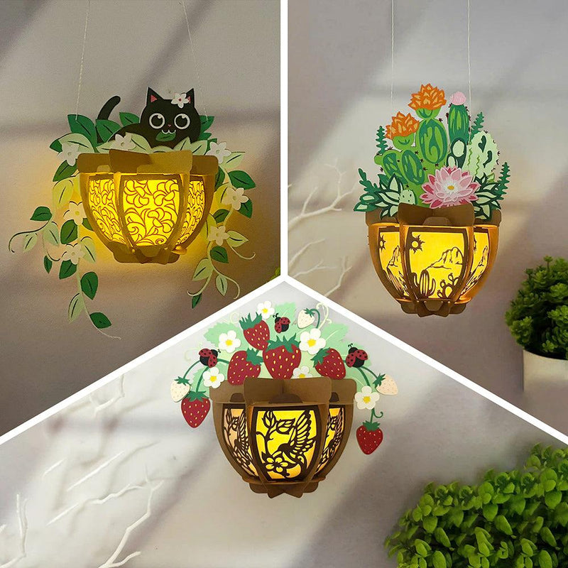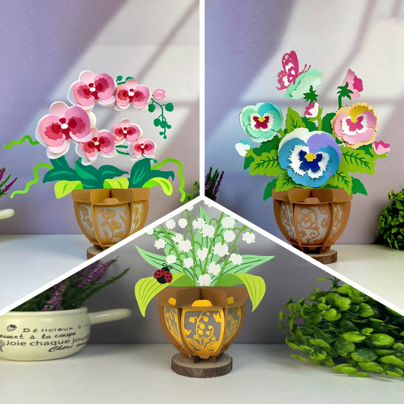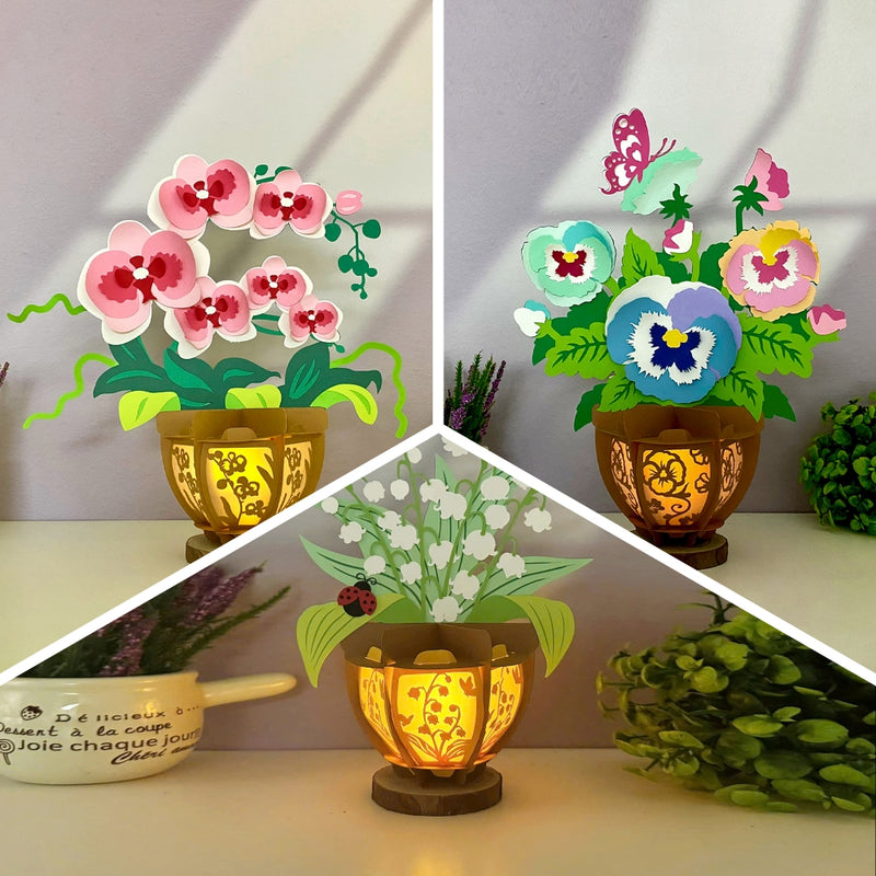 Pack 3 Different Flower Pot 3 - 3D Flower Pot Lantern File - Cricut File - LightBoxGoodMan