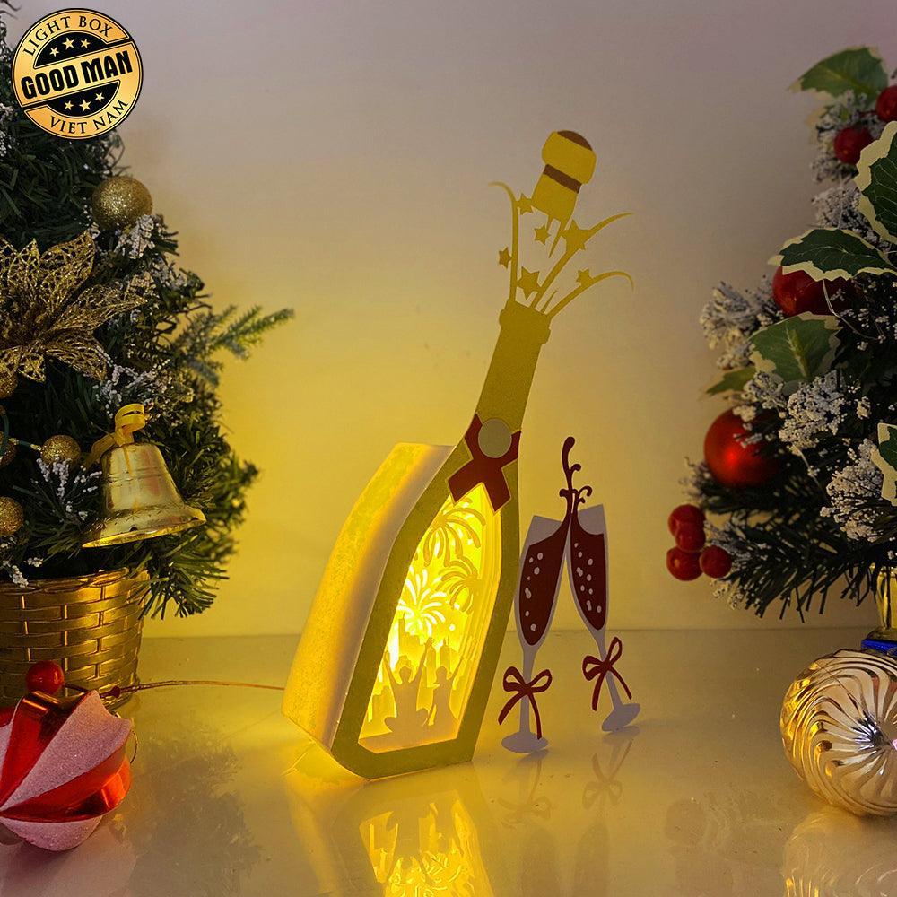 Firework - Paper Cut Champagne Light Box File - Cricut File - 10,3x5,7 Inches - LightBoxGoodMan