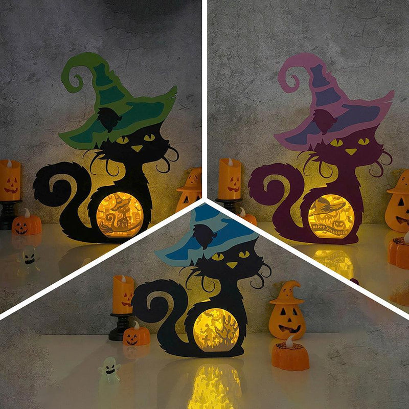 Pack 3 Witch Cat - 3D Witch Cat Papercut Light Box File - Cricut File - LightBoxGoodMan