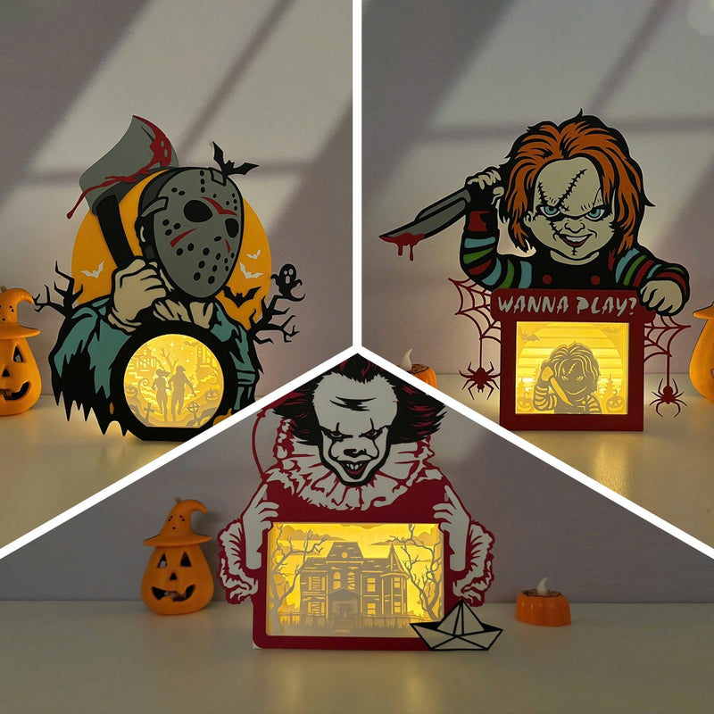 Pack 3 Horror Movie Box - Horror Movies Papercut Lightbox File - Cricut File - LightBoxGoodMan