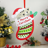 Christmas Bear - Paper Cut Pet Light Box File - Xmas Dog Motif - Cricut File - 11x6 Inches - LightBoxGoodMan