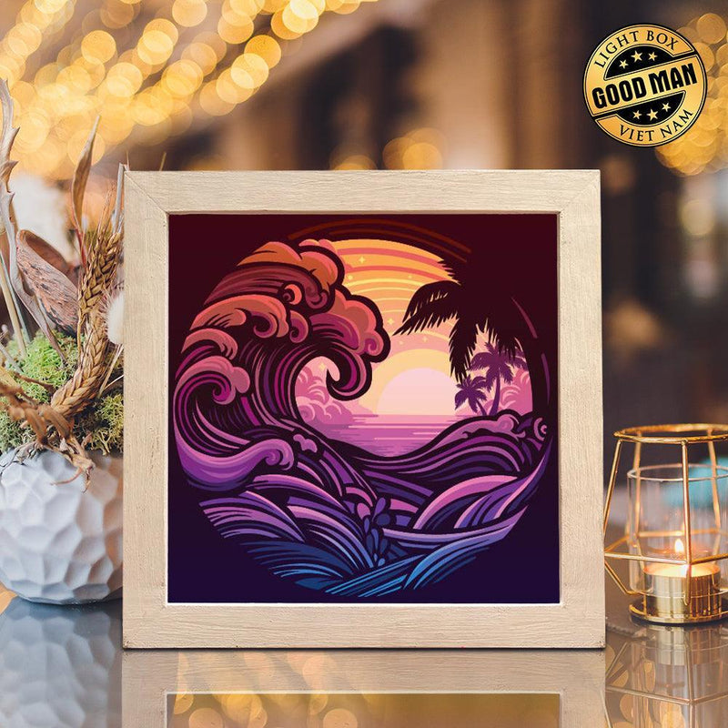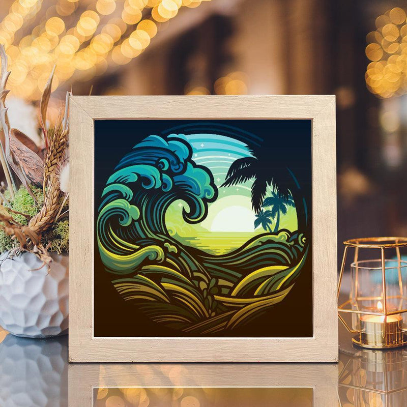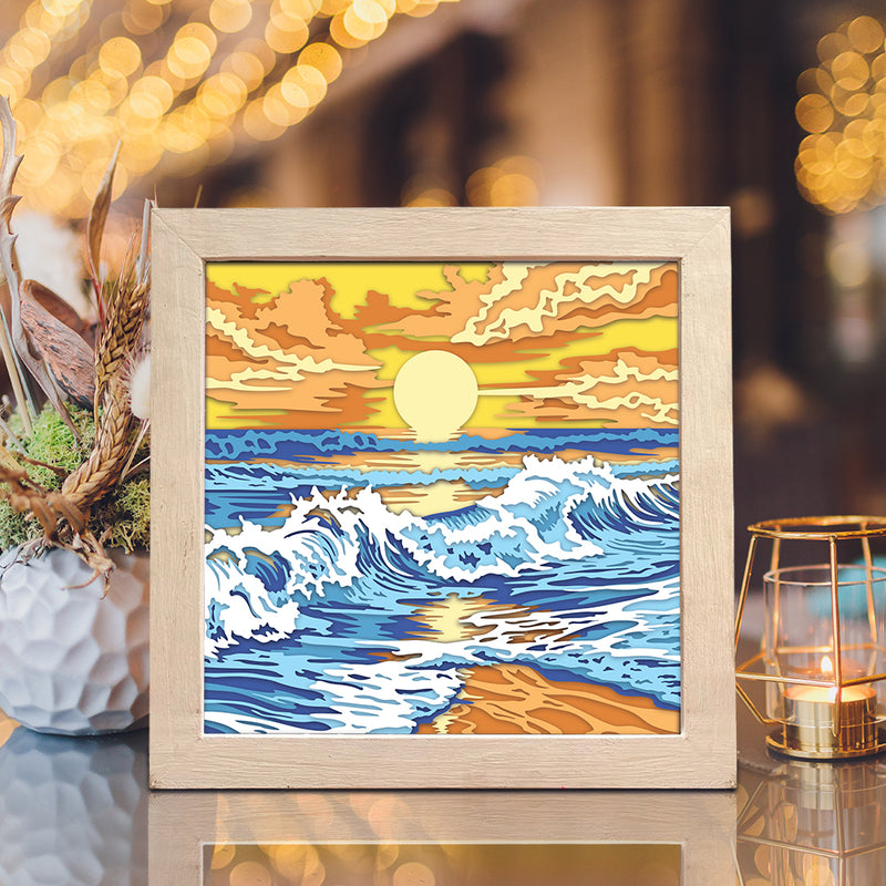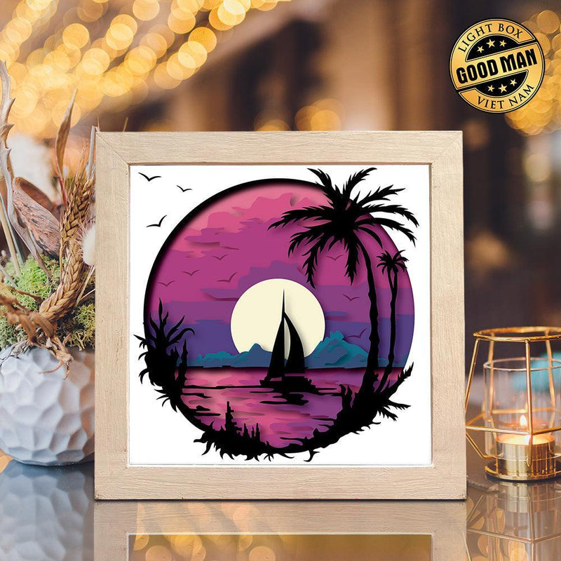 Sunset and Beach – Paper Cut Light Box File - Cricut File - 8x8 inches - LightBoxGoodMan