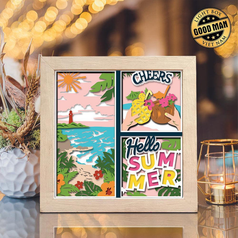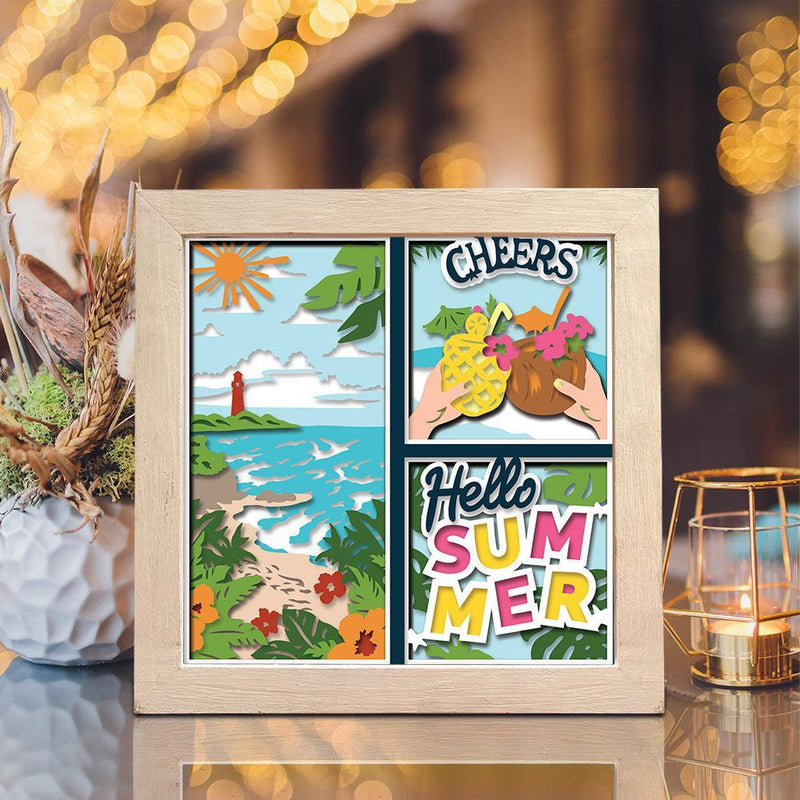 Hello Summer 3 – Paper Cut Light Box File - Cricut File - 8x8 inches - LightBoxGoodMan