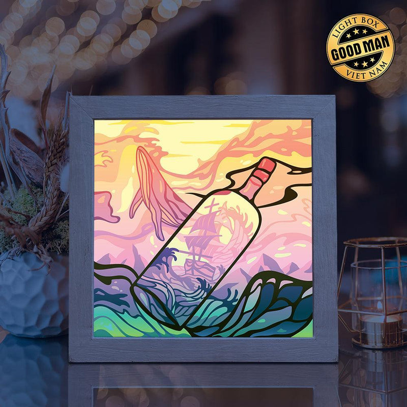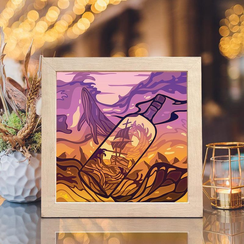 Sailing Ship In Bottle - Paper Cut Light Box File - Cricut File - 8x8 Inches - LightBoxGoodMan