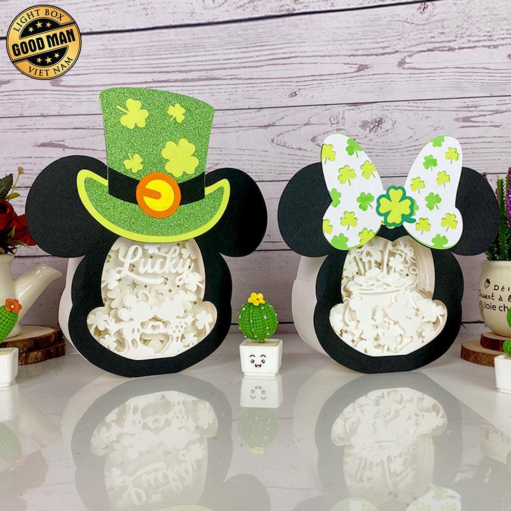 Pack 2 Lucky Mickey Couple - Lucky Disney Mouse Papercut Lightbox File - St Patrick Motif - Cricut File - LightBoxGoodMan