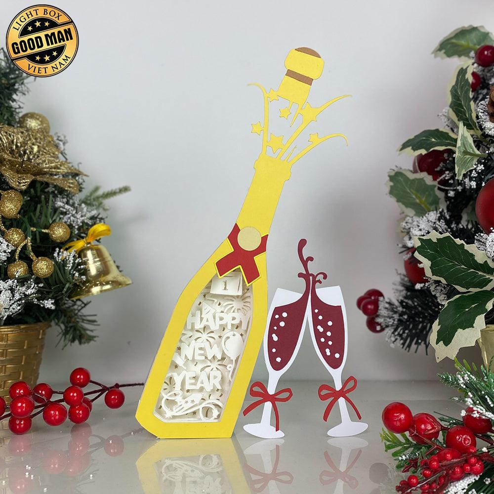 Happy New Year - Paper Cut Champagne Light Box File - Cricut File - 10,3x5,7 Inches - LightBoxGoodMan