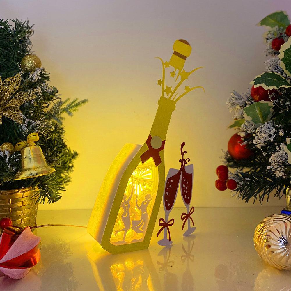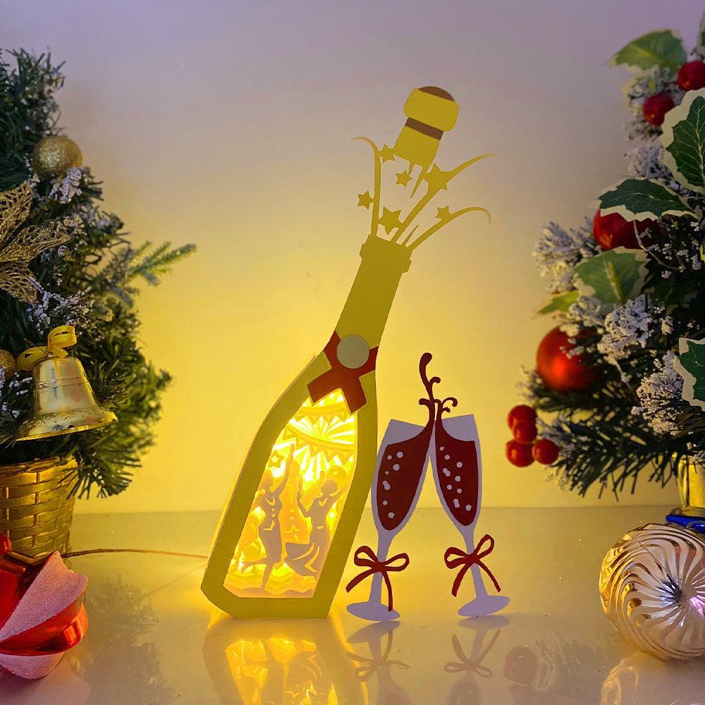 New Year Party - Paper Cut Champagne Light Box File - Cricut File - 10,3x5,7 Inches - LightBoxGoodMan