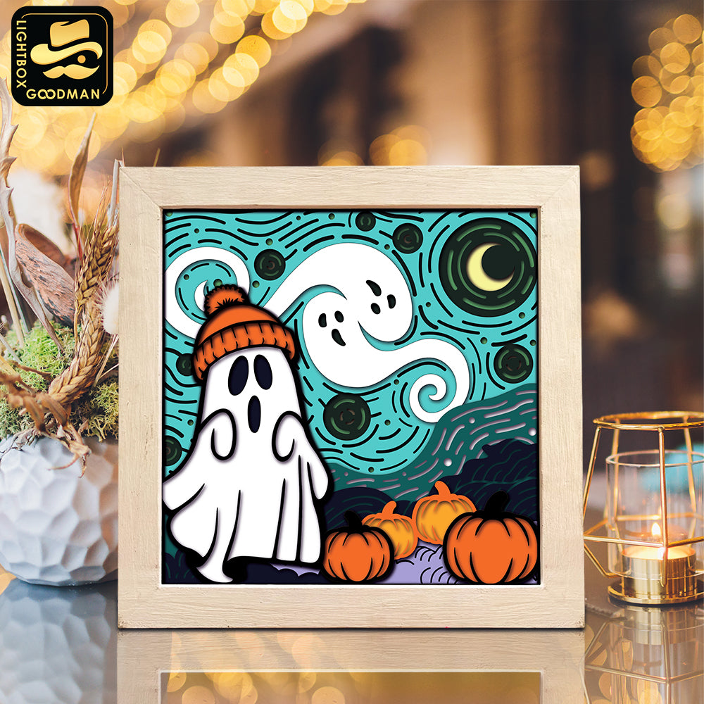 Starry Night Halloween – Paper Cut Light Box File - Cricut File - 8x8 inches - LightBoxGoodMan