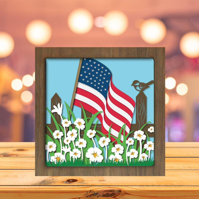 American Flag – Paper Cut Light Box File - Cricut File - 20x20cm - LightBoxGoodMan