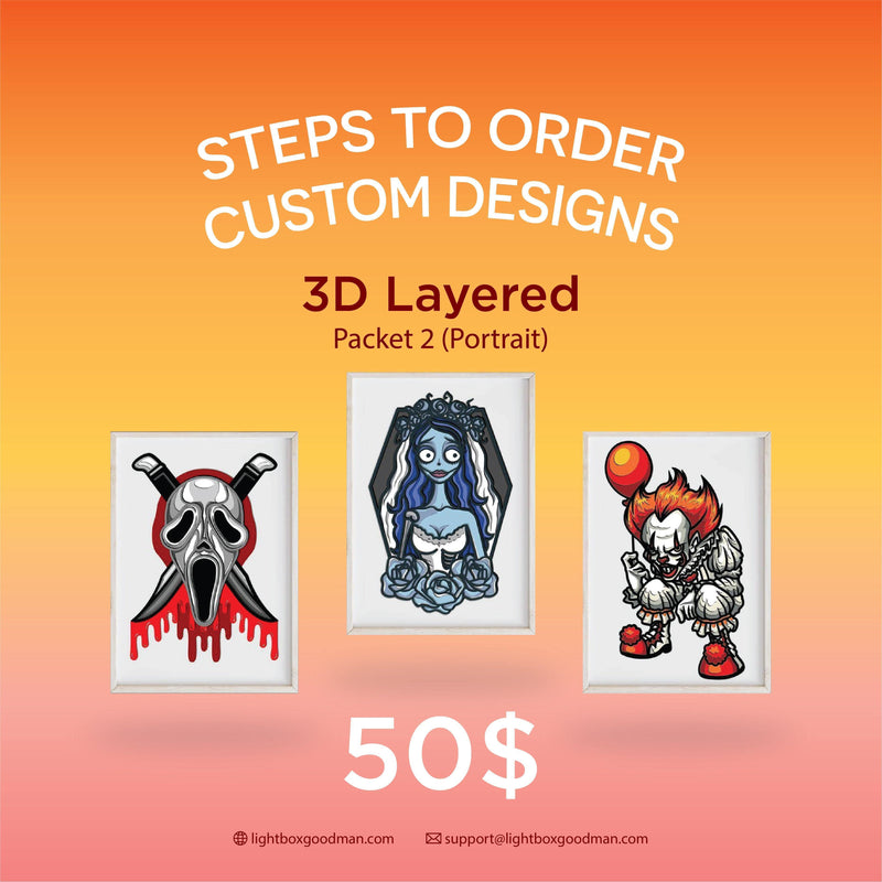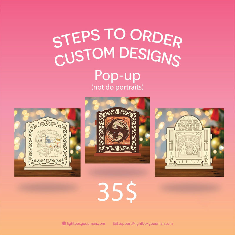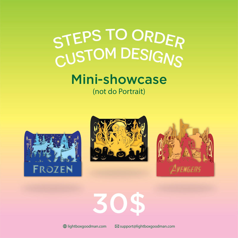 STEP TO ORDER CUSTOM DESIGN :1, Buy custom design products2, Send your ideas to our email for advice (support@lightboxgoodman.com)3, Waiting 2-4 days for the first demo (not including weekend and holiday)4, Get demo and edit (3 times free)5, Make a...