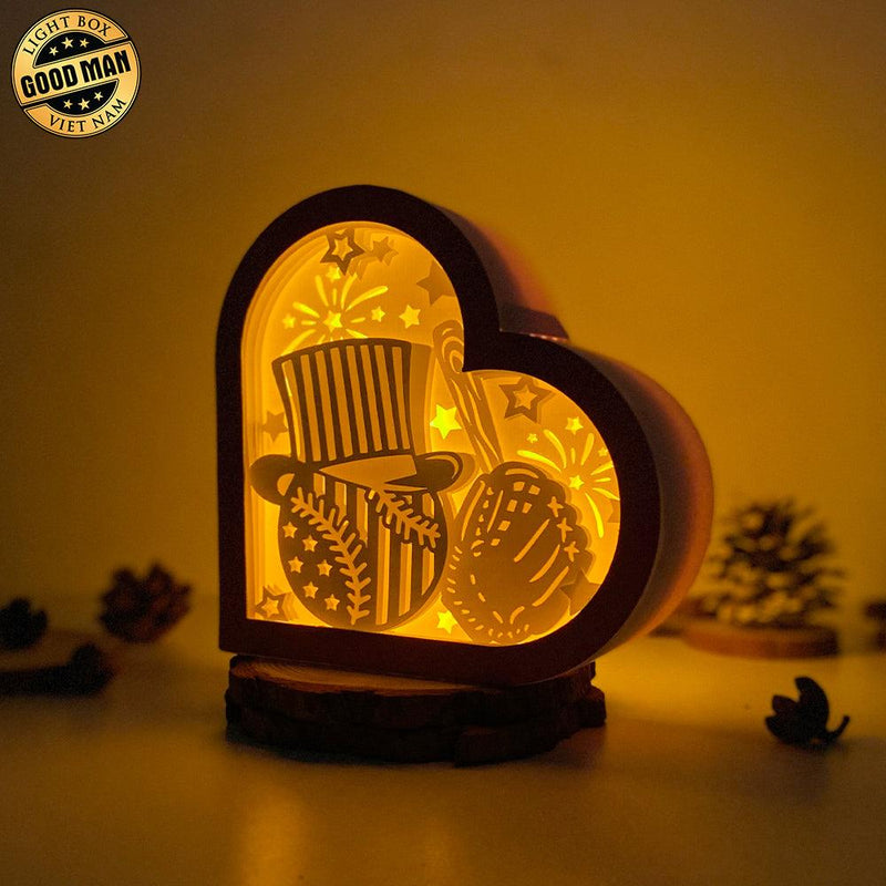 4th Of July 2 - Heart Papercut Lightbox File - 6,2x6,4" - Cricut File - LightBoxGoodMan